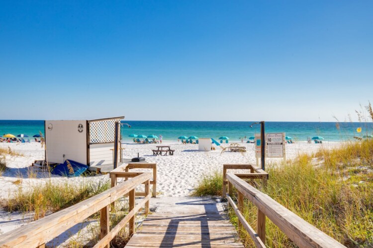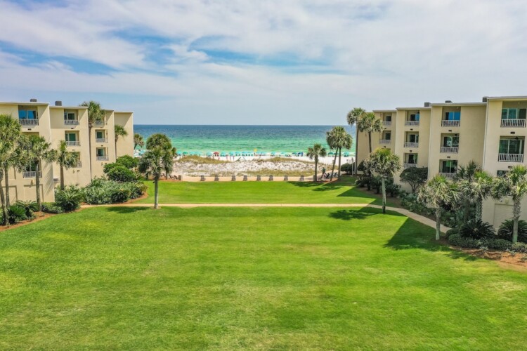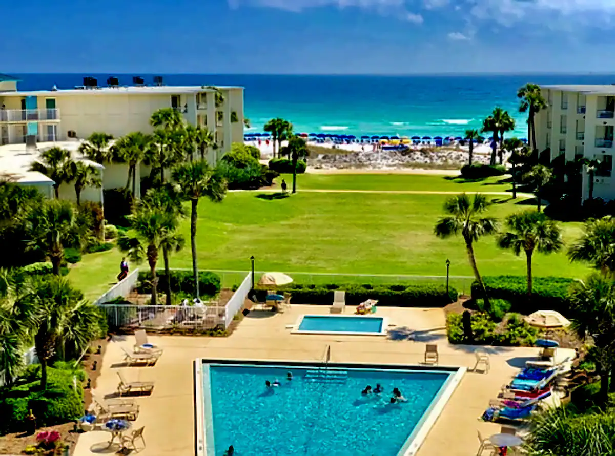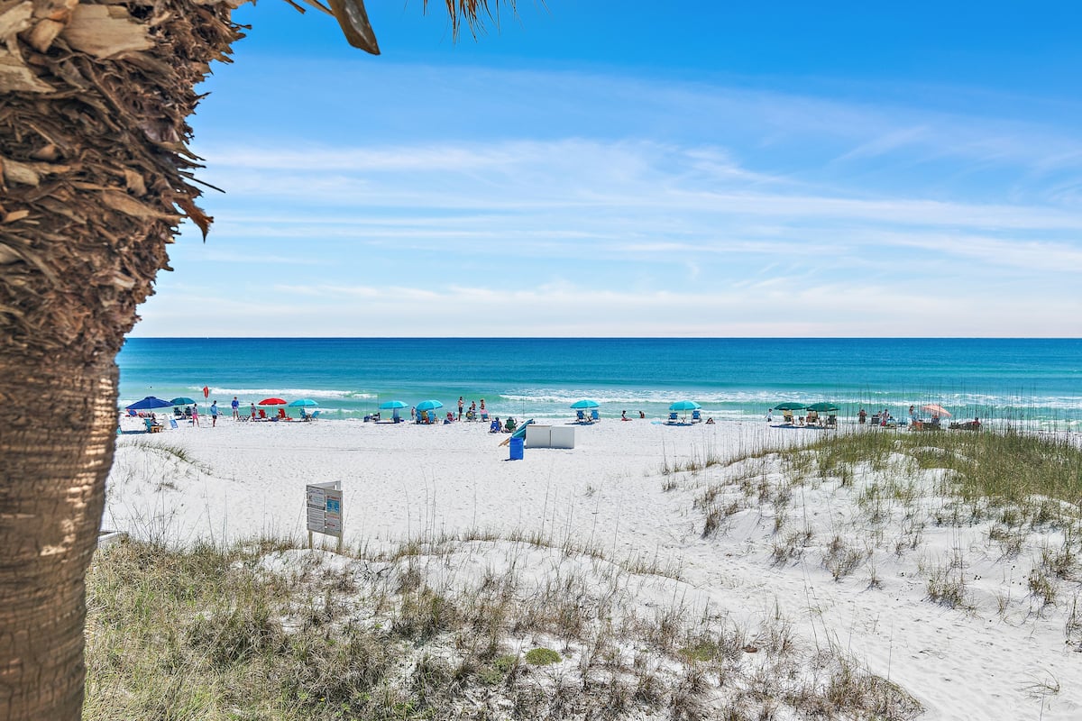 Silver Dunes boasts Destin’s largest private beach and offers immediate access to a sparkling pool. Enjoy tranquil days swimming, sunbathing, reading, or relaxing under the shade of palm trees.
