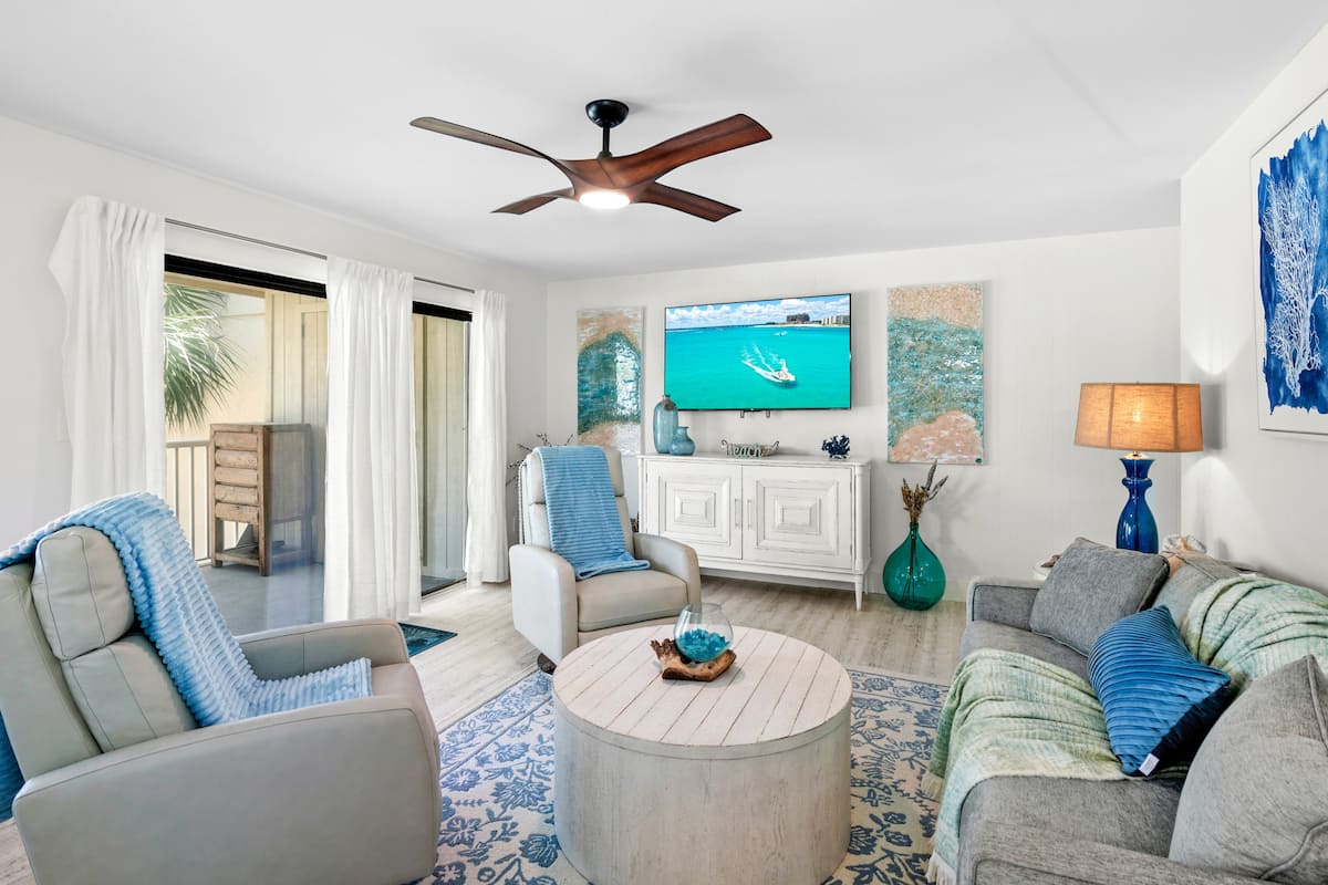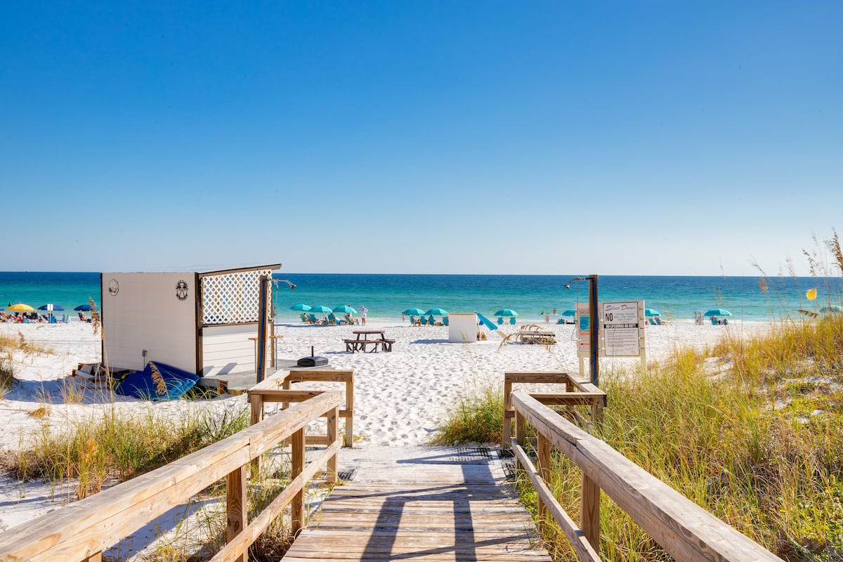 Guests enjoy full access to the condominium, resort amenities including the swimming pool, basketball and pickleball courts, grilling areas, beach service, tennis courts, and private beach access.