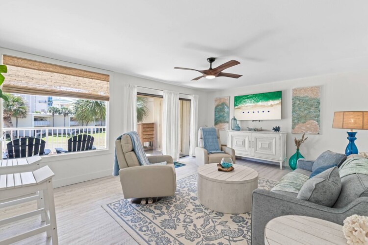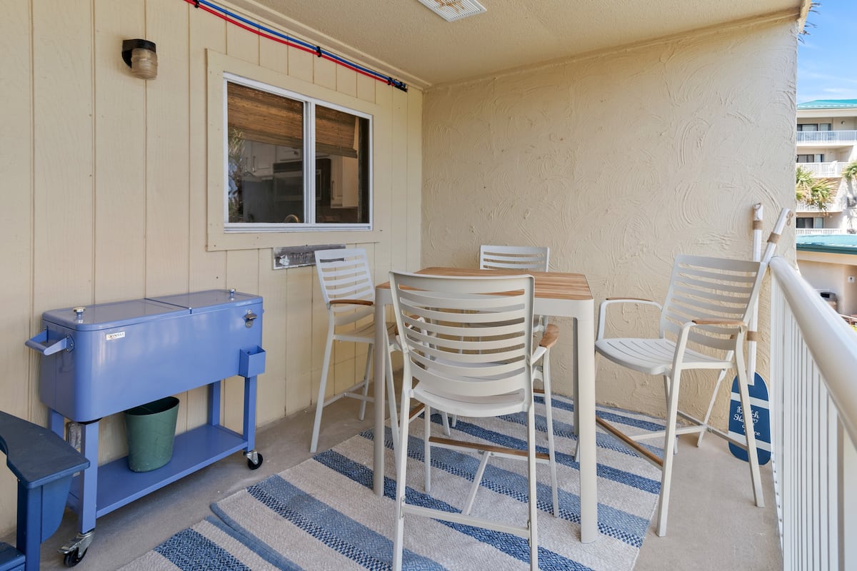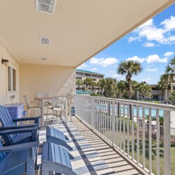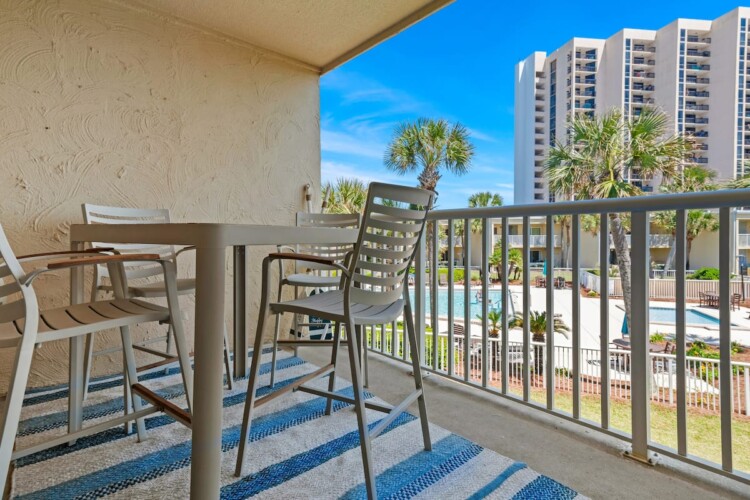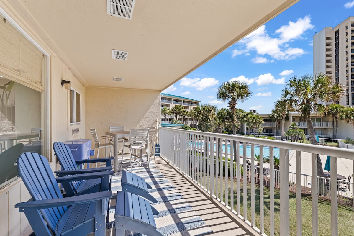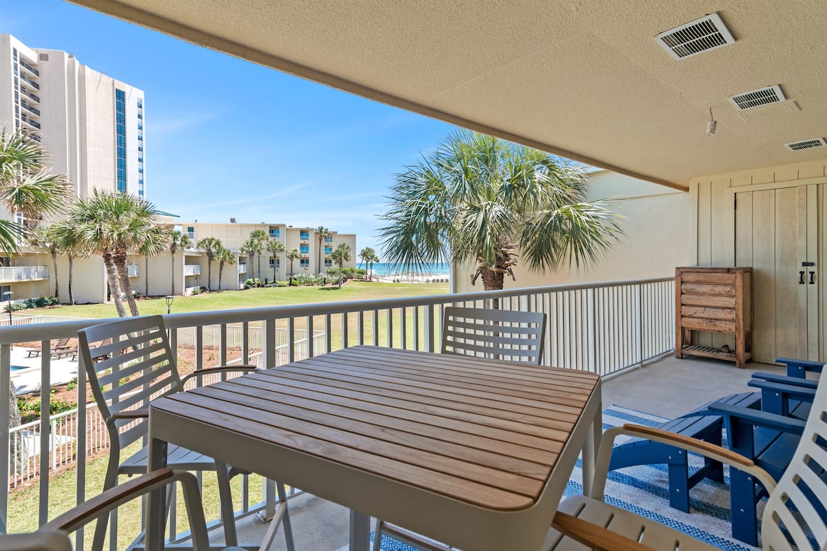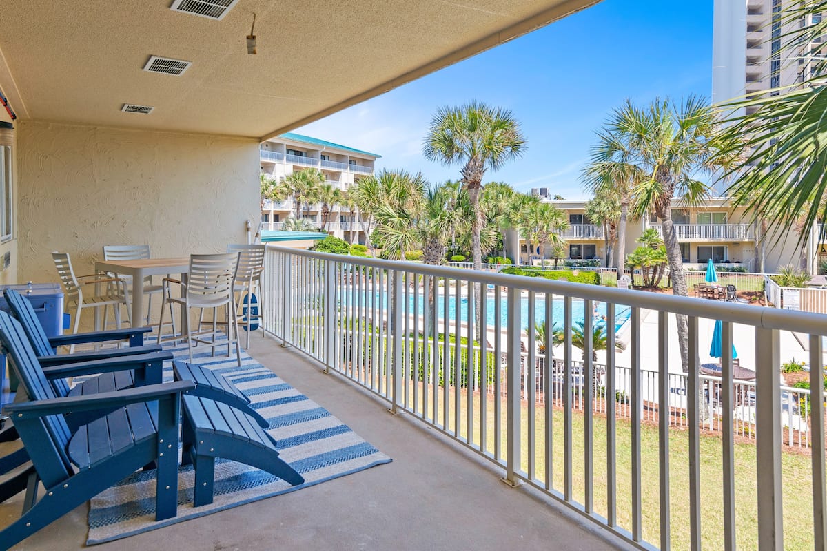 The balcony offers convenient oversight of your children at the pool or in the landscaped courtyard. This second-floor unit 203A enjoys proximity to the pool, a laundry facility (though a new in-unit washer and dryer has been added in our new condo), and arcade. A 1 minute walk across the manicured courtyard leads to the beach. Step onto the balcony to appreciate breathtaking sunsets over the Gulf of America. The soothing sounds of the waves provide the perfect end to a memorable day in Destin.