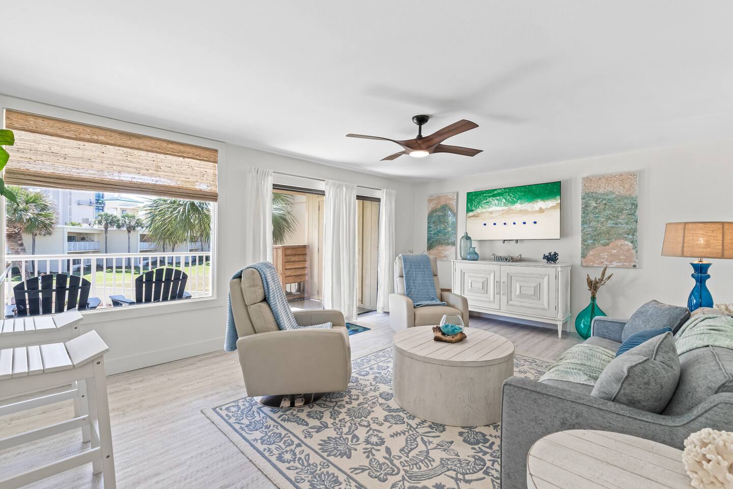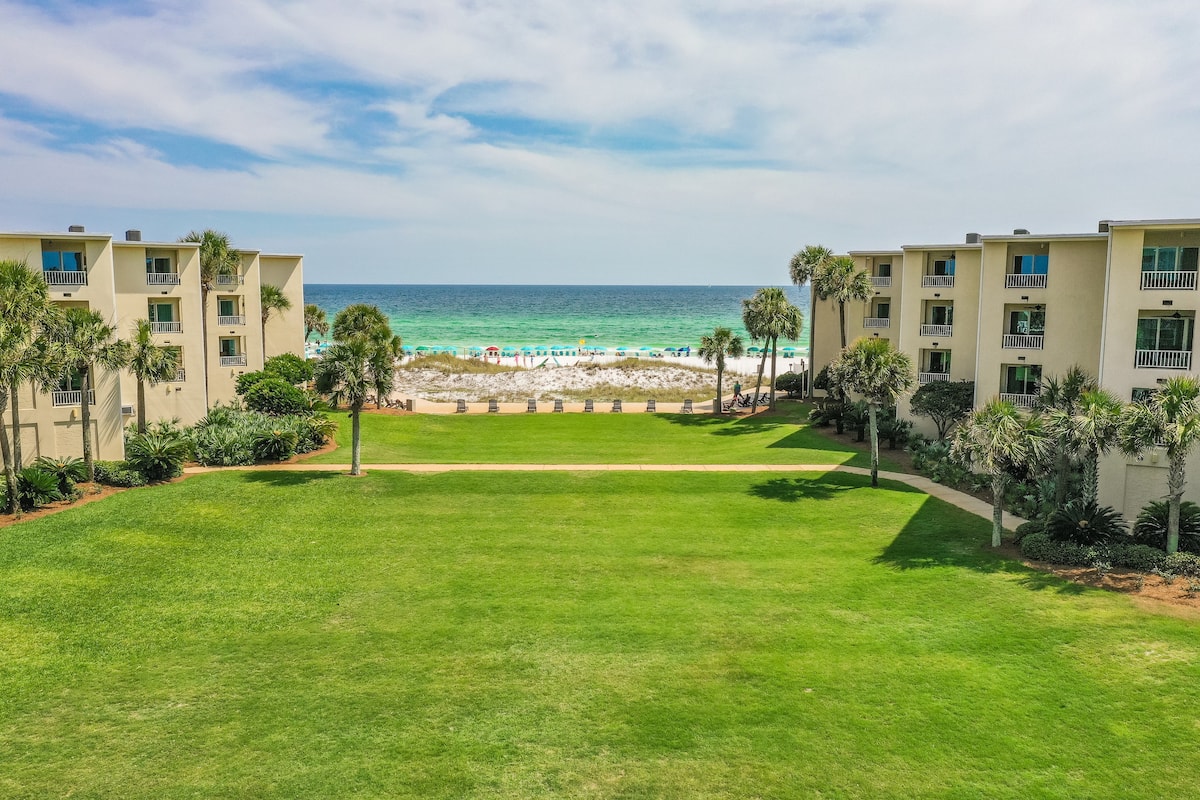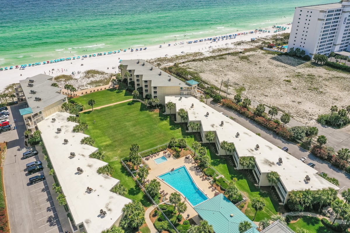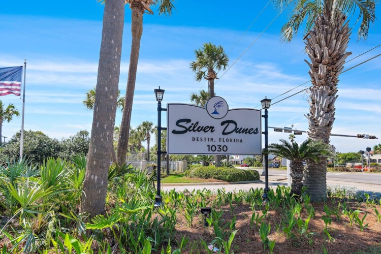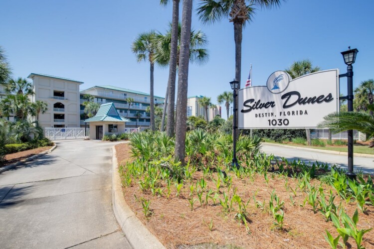 This 2- Bedroom and 2 bathroom condo is located in the highly sought-after Silver Dunes complex, right in the heart of Destin, Florida. Offering the perfect blend of comfort, convenience, and coastal charm, this condo is ideal for both vacationers and permanent residents. Private 343 feet of deeded beach access for boutique low density 98 unit complex PLUS an extra 319 feet of leased neighboring private beach to always ensure you get a front row seat on the beach, an amenity high rises can not offer! Very light and bright living room and kitchen area that opens up to a large covered balcony with views of the courtyard, pool, and ocean! Silver Dunes is a low density 7 acre resort with a unique grass courtyard, tennis, pool, game room beach bar, beach service, laundry room, grilling stations, and on site maintenance/management! Families have been coming here for generations and generations to come, Silver Dunes, Its where you want to be .